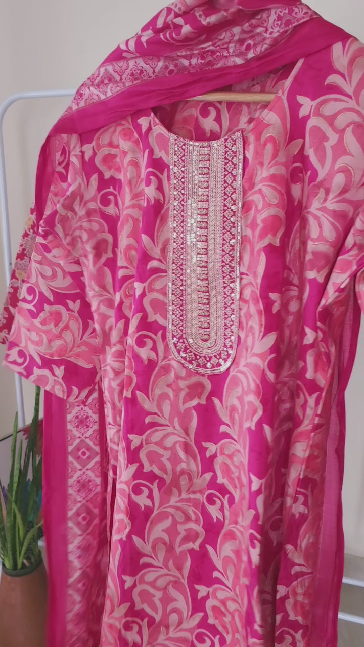 Ethnic Motifs Printed Pure Muslin Slitted Kurta With Trousers & Dupatta
