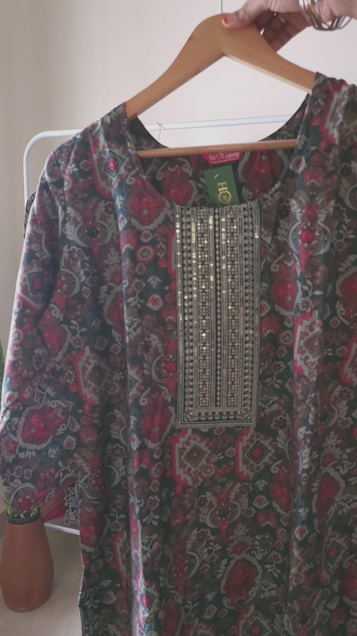 Ethnic Motifs Printed Pure Muslin Slitted Kurta With Trousers & Dupatta